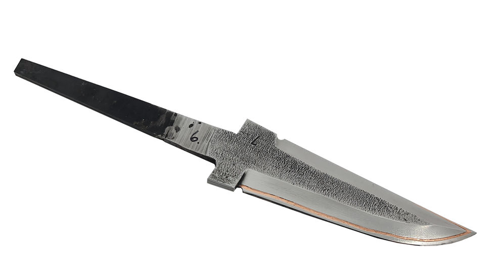 Ståltype: Cu san-mai med kerne i 1.2842 (O2-stål) og kobberindlæg